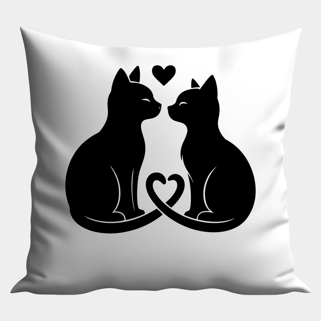 Fekete cicás szíves párna