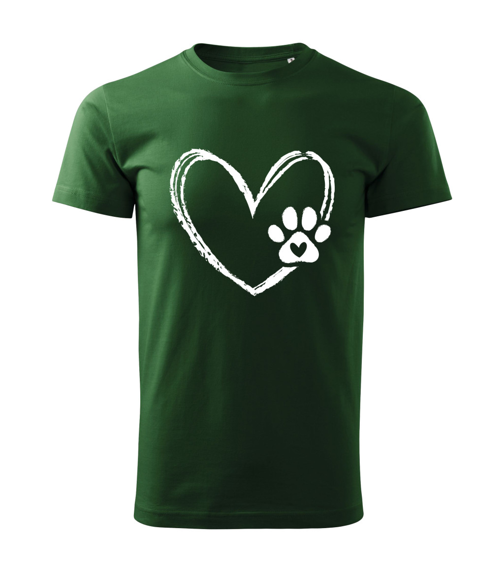 állatbarát póló, tappancsos szív dizájn, szöveg nélküli grafika, szingli stílus, vizuális szeretet, kutyás-cicás felső, minimalista állatmotívum