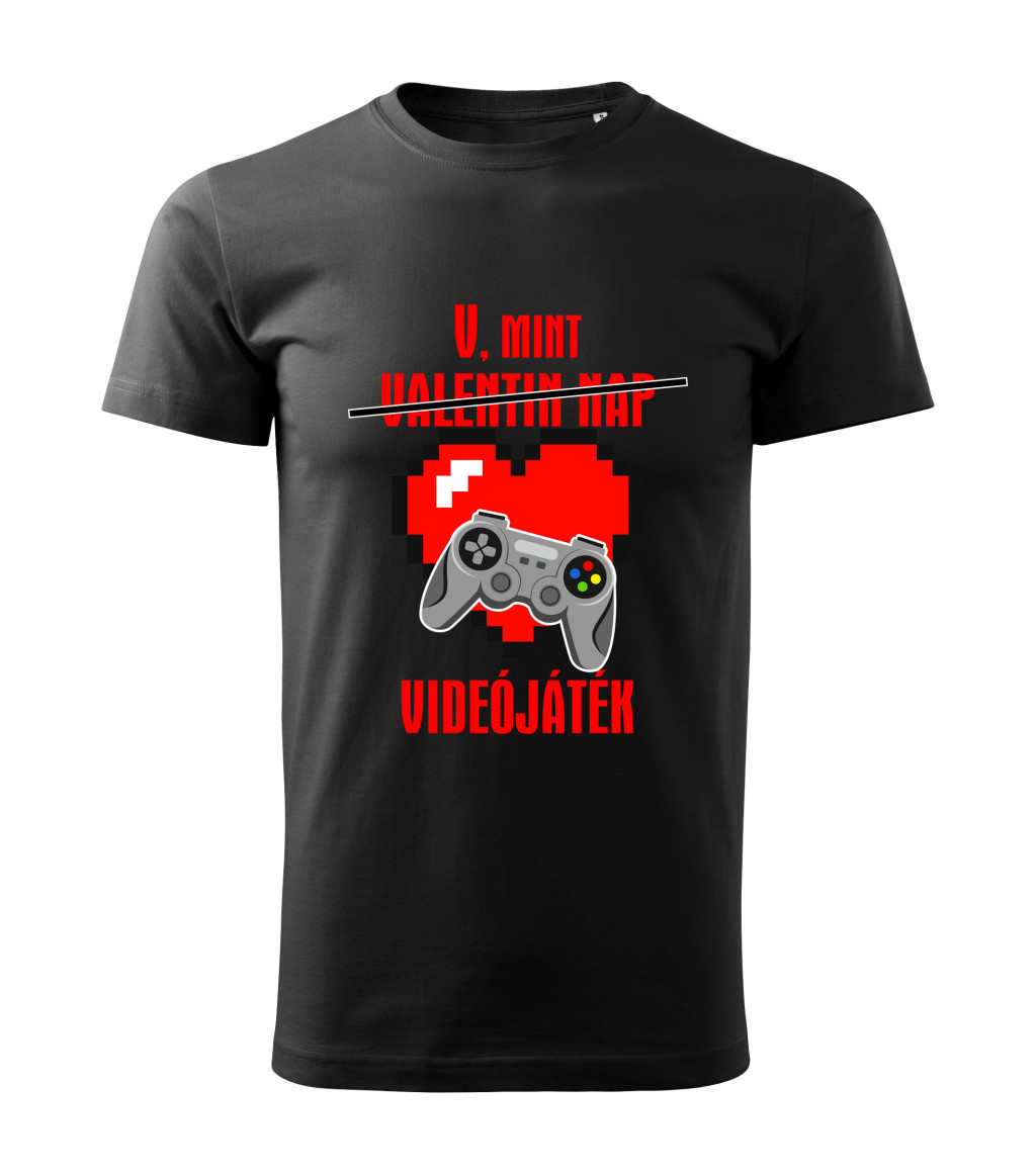 gamer póló, V mint videójáték, anti-valentin felső, szingli dizájn, pixel szív grafika, kontrolleres stílus, játékfüggő identitás