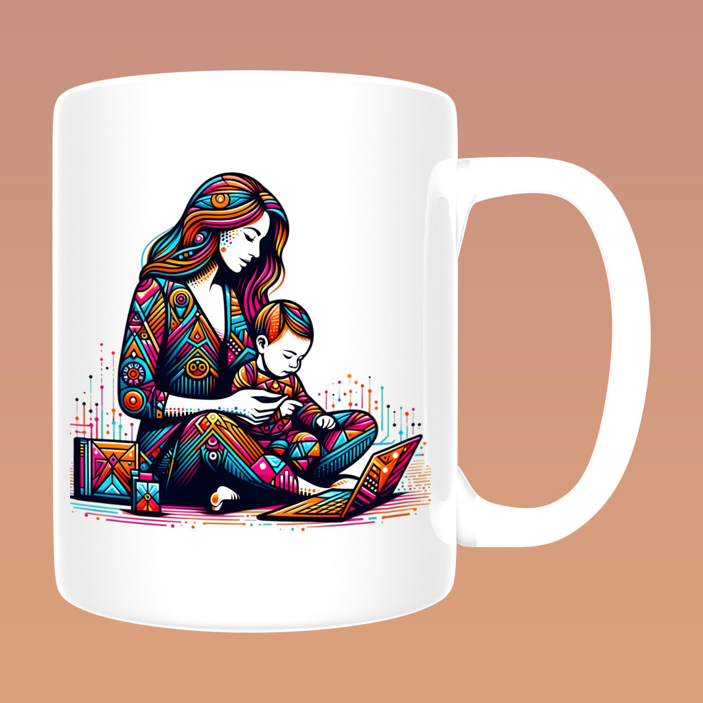 Művészi Anya Kollekció - Geometrikus anya‑gyerek illusztrációs (1) bögre